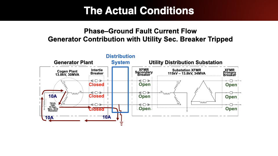 The Actual Conditions – Generator Contribution with UtilityXfmr Secondary Breaker Tripped